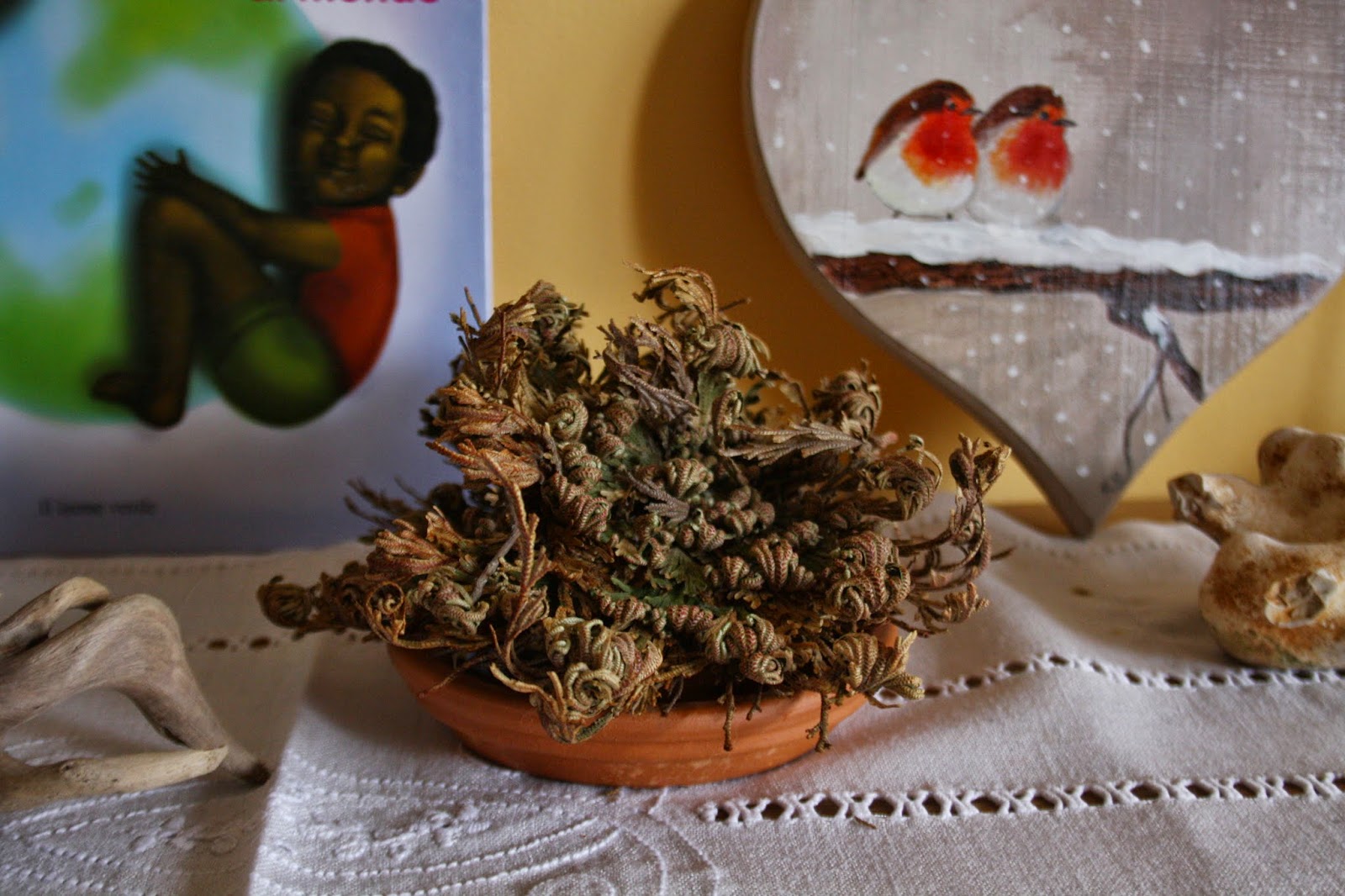 Oggi ho finito gli esami all'università per questo semestre,mi resta da finire di scrivere il diario di tirocinio questa settimana e poi finalmente sarò veramente in pausa. I mesi passati sono stati, come ho raccontato, di raccoglimento e silenzio, in sintonia con la terra accanto a me, ed è stato bello ancora una volta osservare come non ci siano divisioni, come siamo tutto un Uno, una sola essenza. Come gli alberi in autunno hanno perso le foglie e si sono raggomitolati in quiete su se stessi, naturalmente, senza sforzo ma soltanto seguendo la normale inclinazione del bosco di fronte all'inverno, così anche io ho seguito la voce di Creatura e ho chiuso, piegato il capo, lasciato fuori il resto. L'albero sa di avere bisogno della pausa invernale, di quel tempo che pare vuoto e muto, per ricaricare le forze, fare il punto della situazione, come il grano seminato che sa di dover aspettare sotto terra che la neve lo copra e lo nasconda. Allo stesso modo so che verrà l'apertura, e anche questa sarà meravigliosamenete in sincrono con gli alberi e la terra acccanto a me. Sarà l'apertura del parto, della nuova voce che ci sarà in casa, l'apertura al mondo per me e Creatura, che ancora mi spaventa un poco, perchè è così bello essere la nostra forza speciale di due in uno, ma inizio molto lentamente come gli alberi a guardare avanti, a scrollarmi di dosso la polvere di questi mesi passati in raccoglimento. Ci sarà la lotta col il fuoco della caverna e so che sarà straordinaria e dura, poi ci saranno le gemme, proprio come un albero, ci sarà il bosco verde e l'energia pulita e fresca delle foglie.Mi preparo, penso alle sfumature che desidero abbia il mio albero verde, il nostro albero.Se ho paura, penso al bosco, che lascia scorrere i ruscelli attorno alle sue radici, che si fa bagnare dalla pioggia, che non chiede e non protesta, perchè sa che il cerchio gira sempre, che lo scavo di questi mesi è stato inevitabile e necessario, e sa che quando le gemme verranno, tutto sarà pronto perchè è così che deve essere. Simone mi ha regalato una rosa di Gerico, piccola piantina del deserto che si avvolge su se stessa per la siccità e il calore ma che si apre e torna verde appena bagnata con un poco di acqua. Quello è il suo movimneto perenne, dalla chiusura all'apertura, è anche il mio, ma forse non ci avevo mai riflettuto. Questo è stato il mio altalenare negli ultimi mesi: da una grande apertura a un nido fermo e stretto, una chiusura che mi ha inizialmente sorpreso, io così abituata ad incontrare persone, frequentare corsi, organizzare incontri, non ho più avuto voglia o esigenza di tutto questo. Nel silenzio, però, ho strutturato progetti e idee, ho un quadernetto zeppo di cose che vorrei fare, di Tende Rosse da organizzare, di libri da scrivere e leggere, di un'associazione che vorrei creare...diventeranno reali, ma non ancora. Adesso è ancora tempo di inverno, la neve qui non è ancora arrivata, la aspetto, come aspetto gli ultimi tempi di pausa, come il bosco, che brama ancora l'isolamento e la bellezza dei suoi pendii senza foglie e non ha fretta alcuna.